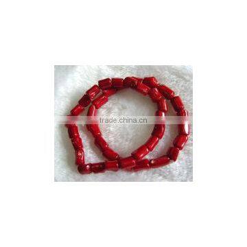 Wholesale 7" 10mm Red Column Natural Coral Stone Stretch Bracelets