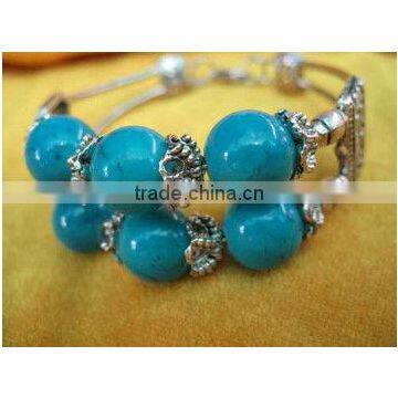wholesale 7" 14mm blue round natural turquoise tibet silver bracelet