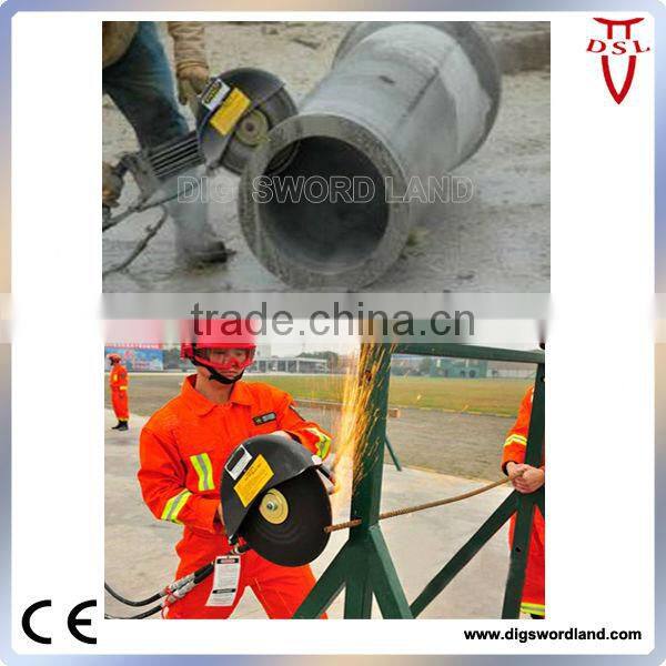 The Hydraulic Disc cutting saw used to cut collapsed concrete precast panel, reinforced concrete, rock, brick, reinforcing steel bar, pipes, Guardrail, metal pipes and so on in Earthquake rescue and Firefighting rescue.