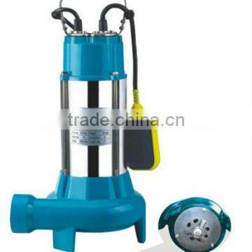 Submersible pump with cutting is an idea machine for draining sewage. A high-speed rotating cutter is assembled at the inlet hole of the pump, mae it easy to cut off long fibre and firm sundries container in the sewage, so as to aviod the impeller is blocked by the entanglement. It is suitable for draining sewage in sanitation, factory, mine and family. The float switch can automatically control on and off with the change of the liquor level. The protector in the motor can automatically cut off power when it overheated or overcurrented, thus guarantee the security and reliability of pump's run even in the atrocious environment.
