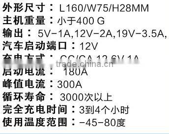 Paremeters of emergency 12V car jump starter power bank 20000mah :
