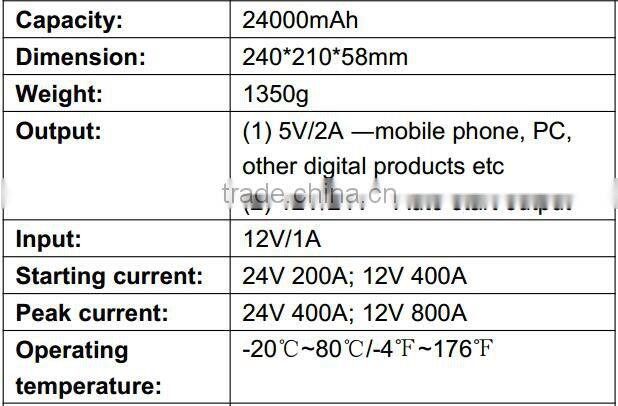 Specification of intelligent power banks, truck battery 24V, heavy duty truck batteries 12v 24000mah: