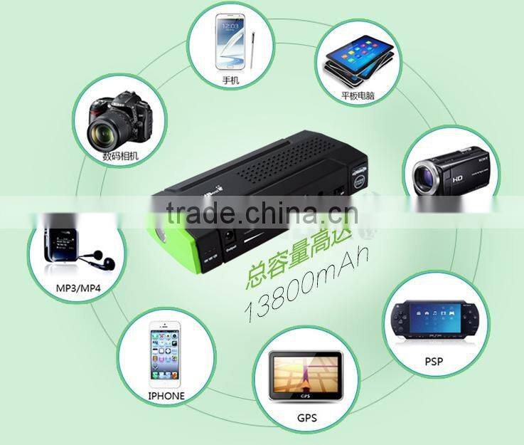 Pictures show of multi-function auto emergency start power supply 12V charging treasure ignition starter 13800mAH