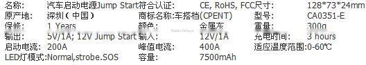 Paremeters of ultra-thin portable power bank 7500mAh, portable source: