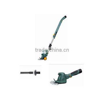 Hedge trimmer and grass cutter blades are changeable without tools