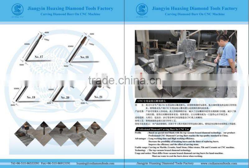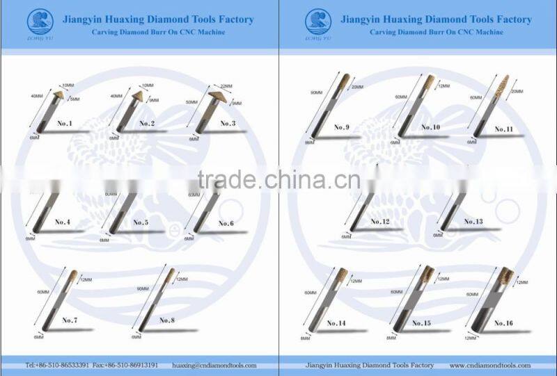 We have operated seven series of products including diamond blades, diamond hole-saws, diamond cutting and grinding wheels, diamond carving burrs, diamond sharpeners, diamond files, resin bond diamond grinding wheels, tungsten carbide burrs etc. We would be able to design and manufacture all kinds of diamond tools in electroplated and vacuum brazed technology as per customers' sample or drawing. Our high quality products are accepted and praised by customers all over the world. We will be always supplying high quality products, the most competitive prices and perfect after-sales services to our customers. Please feel free to contact us for further information.