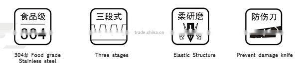 4.Food grade stainless steel classic geometric design, keep the sharpener more safety, health and elegant.