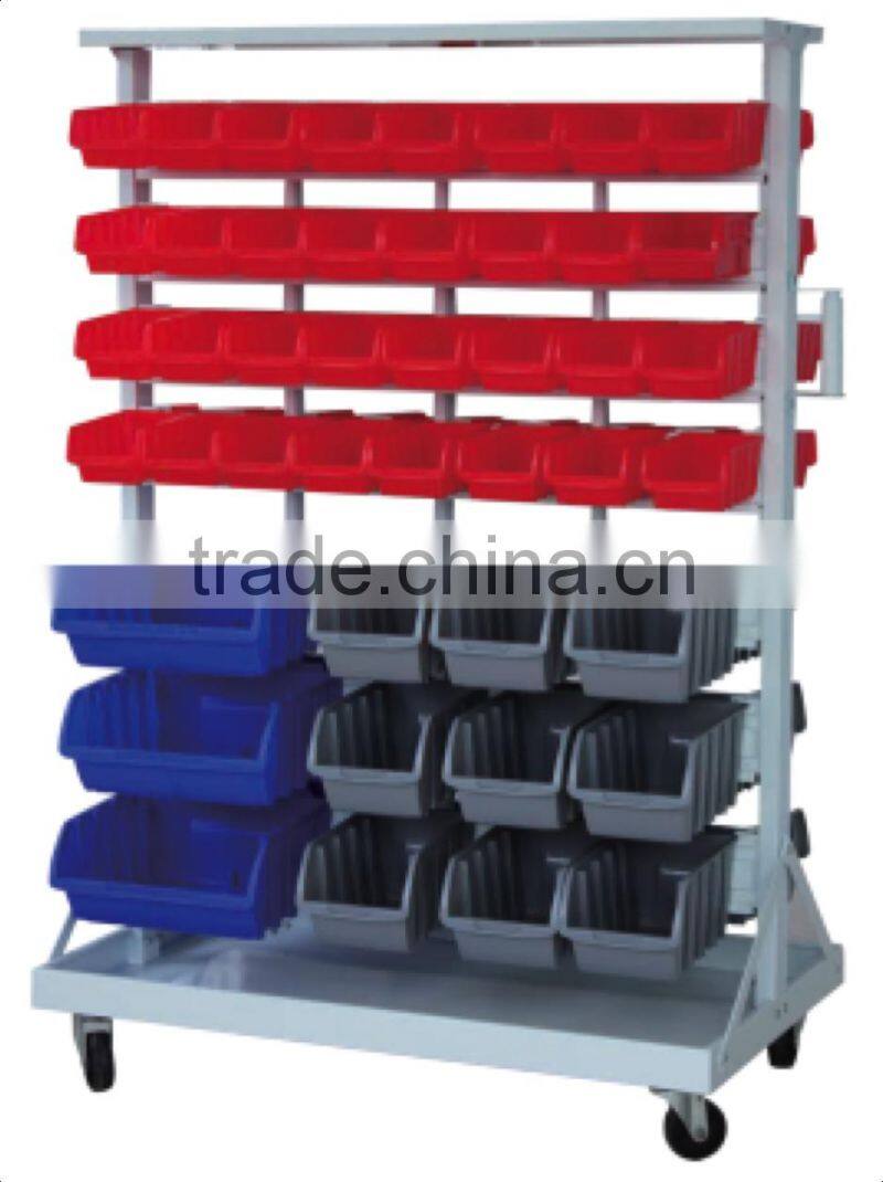 BR-001 88-bin Double-sided Rolling Bin Rack Bin Wall Mounted Parts Rack Bin Organizer With Tray and Casters Bin Rack Storage