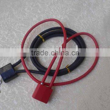 Features:-This lock consists of an armored steel cable with one end permanently secured to