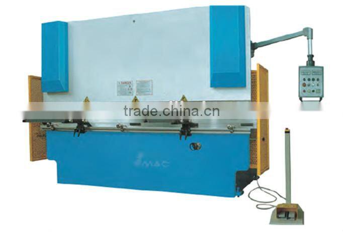 For bending machine from 250 t up synchronization mechanism of mechanical or electrical hydraulic transmission is fitted, lower working table is fitted with warp offset mechnaism.