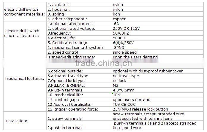 FS027 6301 4002 110 mm cut off electric 6A power tool switch