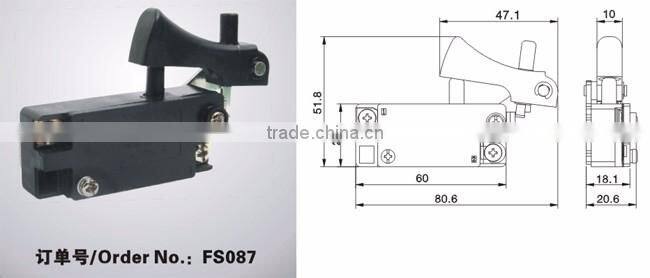 this switch is usde in angle grinder, suit for Bosch 180,or Hitachi 180, and it's mechanical switch, push the button, the power will get the maxim