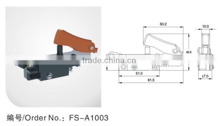 this switch is usde in demolition hammer, a replacement for PH65A, H41, H40MR, HM0810T, 5900BR, 5714NB and so on. it's mechanical switch, push the button, the power will get the maximum.