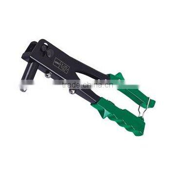 Tensile stainless steel and aluminum rivet; spring handle extrudes out rivet automatically.