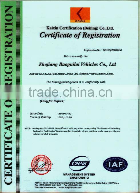 Zhejiang Bao Gui Lai Vehicle Co., Ltd is located in a beautiful city: Jinhua City of Zhejiang Province, China. We have comprehensively technological power, novel and unique designing ideas, abilities of putting good ideas into practice, high-quality products and excellent production.