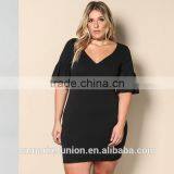 2017 Hot Sale Deep V-neck Elbow Sleeve Black Dress for Fat Women