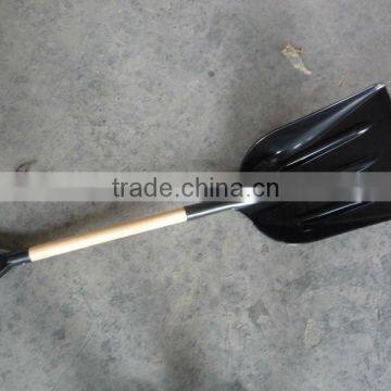 black PP materil snow shovel head with wood handle and comfortable Y grip.PP material is strong and durable,easy for taking with.
