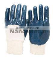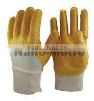 NMSAFETY top interlock liner coated yellow nitrile open back safety gloves