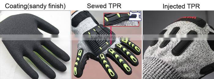 NMSAFETY 13g hi-viz yellow nylon liner coated nitrile sandy gloves tpr Mechanical hand gloves anti-impact