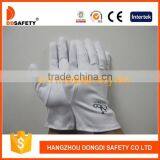 DDSAFETY 2017 100% Bleached Cotton Gloves Interlock Mini Dots On Palm 3 Seams On Back Safety Gloves With Steel Buttons