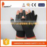 Half Finger Gloves With PVC Dots Black Cotton Polyester String Knit Gloves