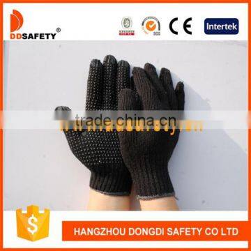 DDSAFETY Black Cotton Polyester Gloves With Black PVC Dots One Side