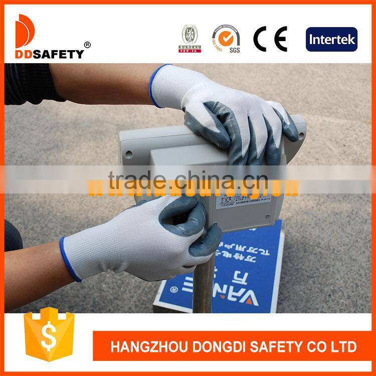 DDSAFETY hot sale in 2015 nitrile coated,smooth finish,nylon glove, 100%nylon liner safety gloves with CE DNN328