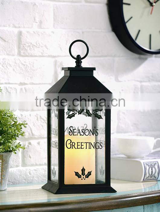 * Plastic Black Christmas Lantern w/ Single LED Resin Candle Installed