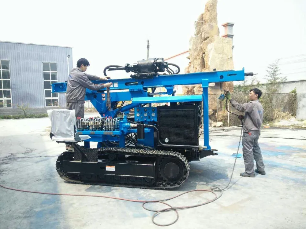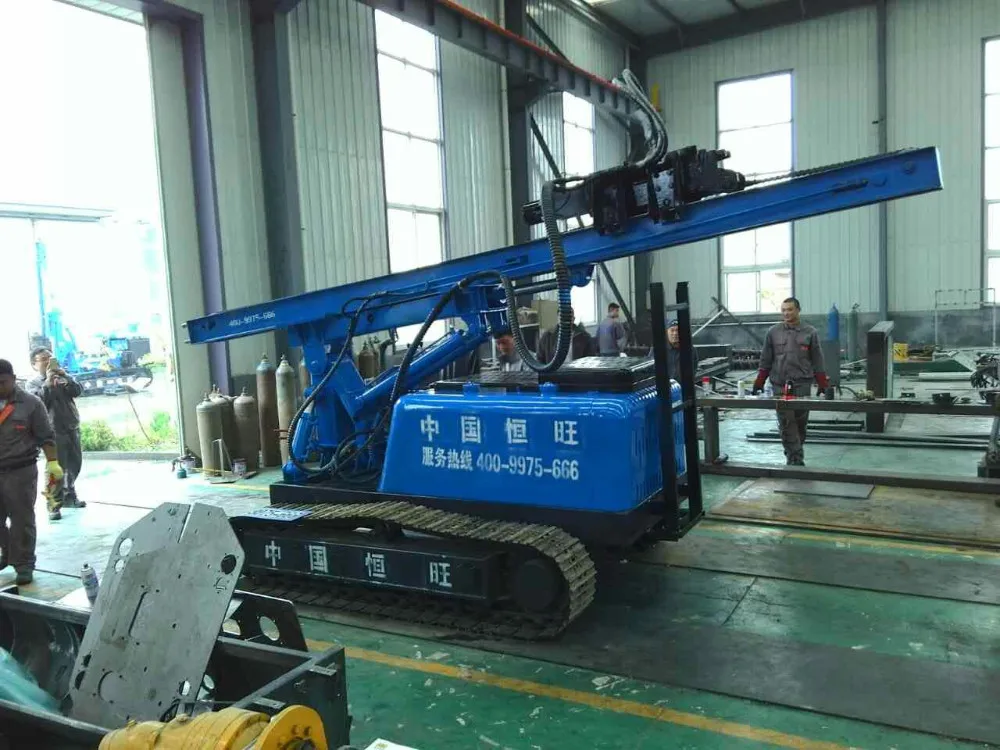 3.The drilling rig is mainly used for piling anchoring, well ,photovoltaic solar rotating pile and water conservancy, power plants, open-air mining, road construction and other stonework blast hole drilling and so on.