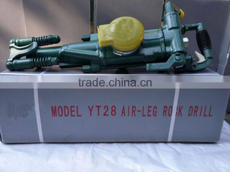YT28 Hand-held pneumatic leg rock drill is a kind of rock drill of high efficiency which is widely used to drill blast holes in rock tunneling and drilling work.