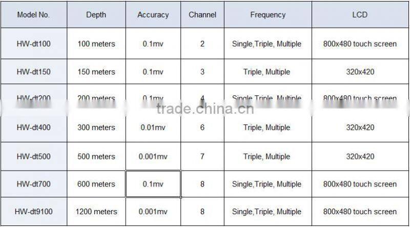 HW DT-150 Multi-Function Natural Electrical Field detector is portable, efficiency, easy-handling and accurate analysis. It is auto-measuring which could show data and curves clearly and simple. Comparing with traditional DC electrical water detector, its speed of measuring was increased more than 8 times, but the instrument weight was decreased 8 times. In the past 20 years experience, we won a high reputation and were high acclaimed by our customers.