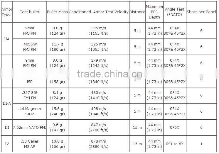 1.Material:Kevlar, Ceramic, PE, Silicon carbide, steel