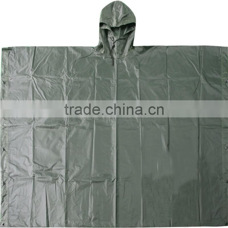 High Waterproof Function 210T PVC Coating Green Color Miltary Poncho Outdoor Training