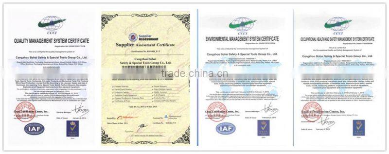 Cangzhou Bohai Safety & Special Tools Group Co., Ltd. is a professional manufacturer.Our main products are non sparking safety tools,Steel DIN stand hand tools, Stainless steel hand tools, including slogging spanners, sockets, pliers, brass hammers, cooper hammers, F-Valve spanner and more than 300 kinds of products,We can also develop new products according to your needs.Established in 1978. We expanded to a group in 2006 based on original Cangzhou Bohai Explosion-proof and Special Tools Manufacturer. series. In 2001, all our products got ISO9001 and UKAS certification. All of our products are manufactured in strict with GB10686-89 and DIN Standard. The non sparking tools are mainly used in the hazardous environment where flammable and combustible vapors liquids gas dusts are present. They are applied in the petroleum industry, chemical industry, power generation, railroad and mining. Our company insists on the principle that "Customer is God" and would like to cooperate with all of the customer with high-quality products and excellent after-sale service.