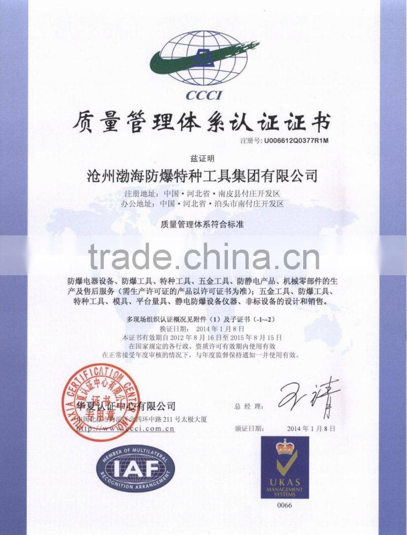 manufactured to ISO9001 and UKAS Certification. Our non sparking tools are mainly used in hazardous