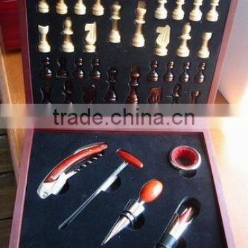 Including corkscrew,wine thermometer,wine stopper,wine pourer,wine collar,chess and wood box