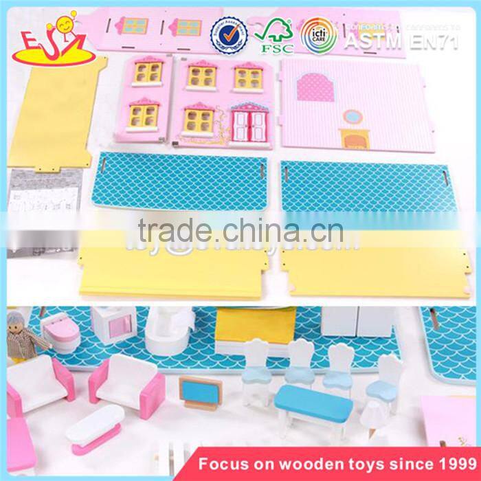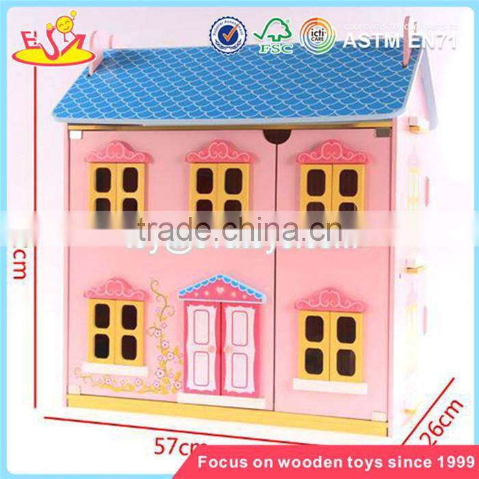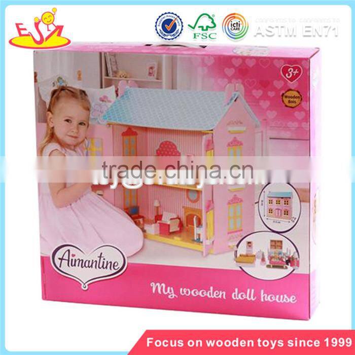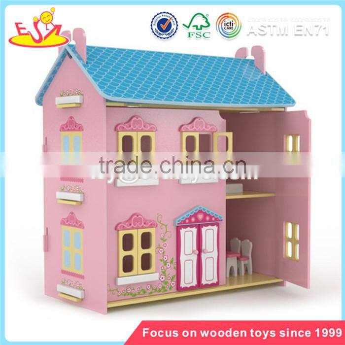 wholesale pink delicate kids wooden dollhouse beautiful children wooden chic dollhouse for sale W06A029