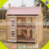 Best Design Pink House Toys Wooden Dollhouse High Quality Pink House Toys Wooden Dollhouse for Girls W06A020