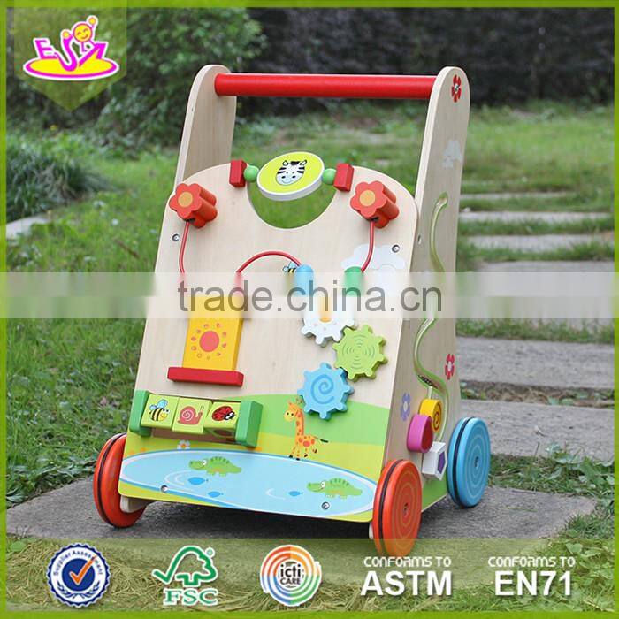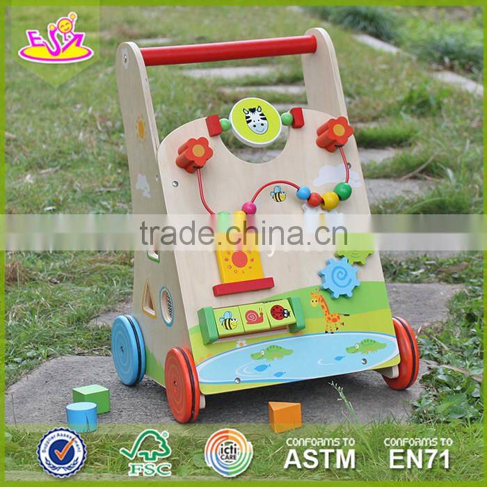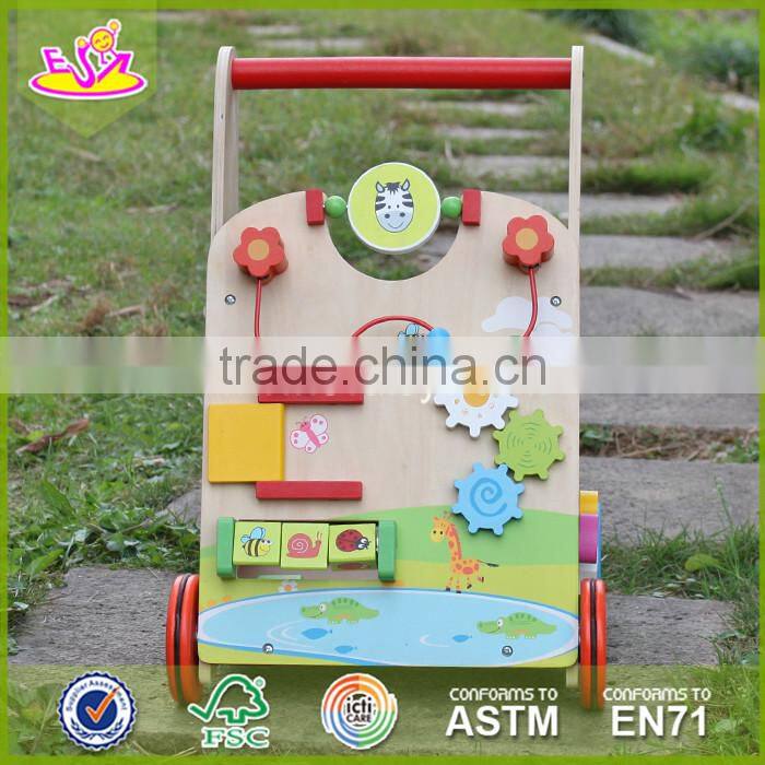 wholesale high quality wooden baby push walker outdoor interesting toy wooden baby push walker W16E061