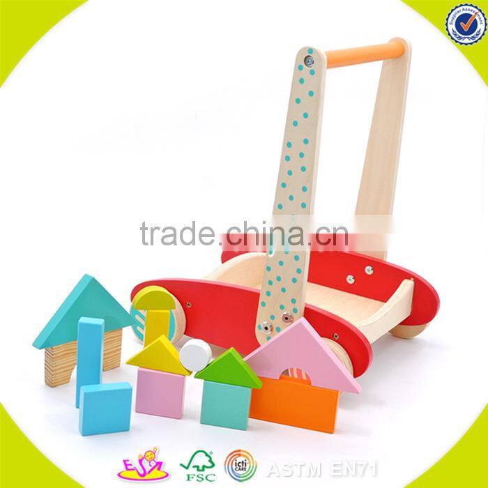 2017 wholesale preschool wooden baby walker with blocks new design colorful wooden baby walker with blocks W16E073