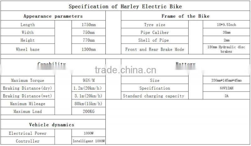 Sales Promotion 2016 Fashion High Power Harley Design Stable Chopper Electric Bike