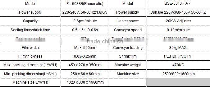 FL-5038 series sleeve wrapper wrapping and shrink machine Parameter