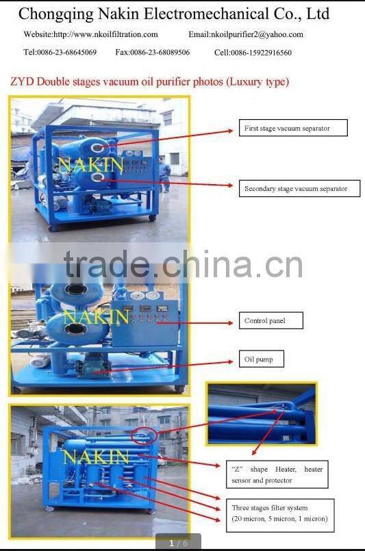 Chongqing Nakin oil purifier Manufacture Co.,Ltd is professional vacuum oil purifier/oil filtration, supply various vacuum oil treatment plants, like the transformer oil regeneration machine, online-turbine oil treatment, Old lube oil filtration, engine oil regeneration machine in good quality and competitive price.