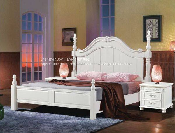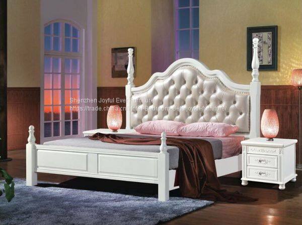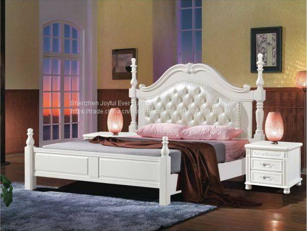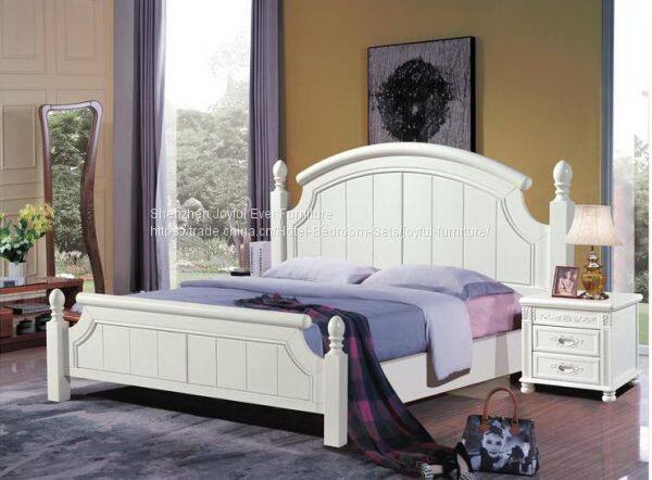 White PU Painting High Quality Rubber Solid Wood Furniture Bed in American Leisure Style