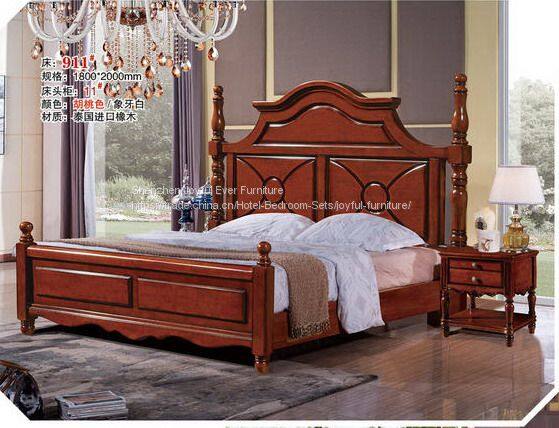 American Leisure Style Furniture Walnut Painting High End Rubber Solid Wood Furniture Bed