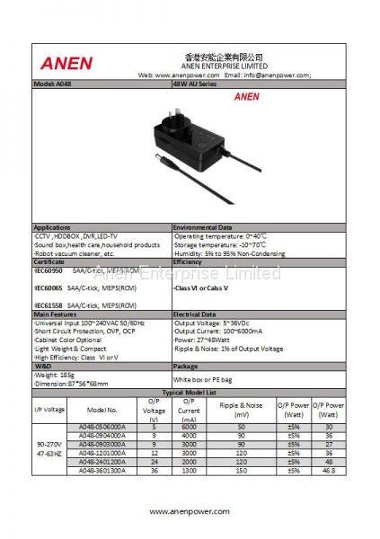 48W AC Adapter with AU Plug,GS,CE, UL approval, VI Efficiency, 12V4A 24V2A Power Adapter