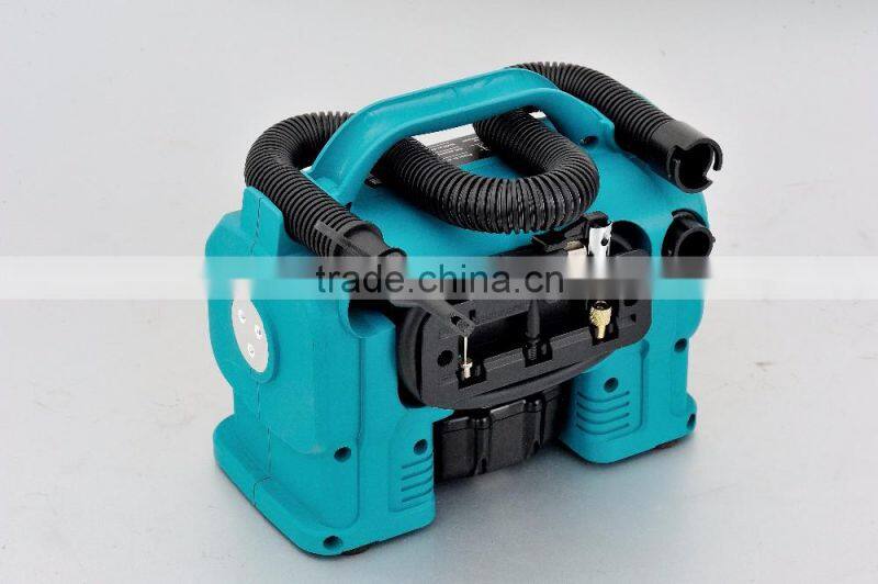The Inflator is a portable tool for all purpose, for example, balls, tires, air bed, etc. compatible for different power source: car 12V dc cigar-lighter, 120V power, 220V power, 18V DC power. Two functions available: inflator and deflator. High pressure limit for hard pressure work.