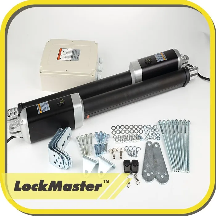 Get your gates to open at your command with the new Version Genuine Electric Gate Opener Auto Swing Door Motor . This Lockmaster Dual swing gate opener opens 1 or 2 gates for your car with a click of the button on the remote. Featuring TWO powerful 24V DC motor designed for heavy duty use, each motor is capable of powering both 3 metre gates with a maximum weight of 300kg.