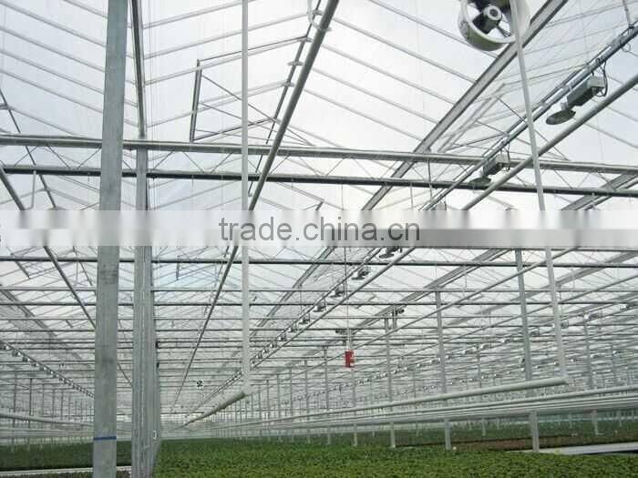 5.This type of greenhouse can realize automatic control, a complete alternative heating systems, sunshade systems, the cooling pad system, CO2 complementary system, light system, and spray, drip irrigation and fertilization systems, computer integrated control system, sprinkler system.