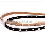 Fashion Pearls Decorated Pin Buckle Sex Girl Thin PU Waist Belt